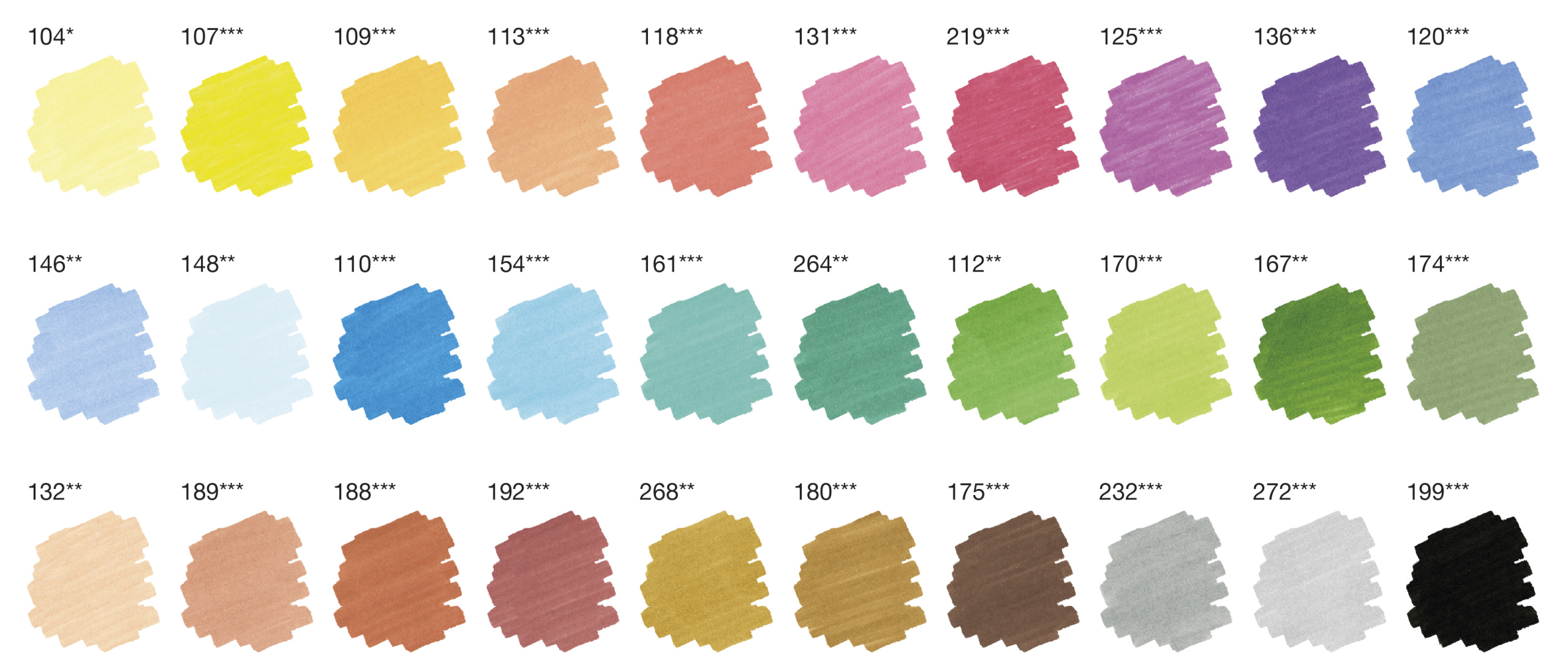 Click here to view the Faber-Castell Pitt Artist Pen Colour Chart.