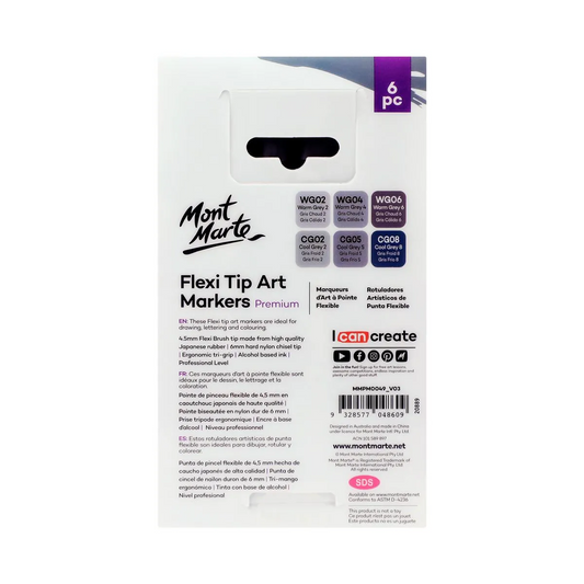 Mont Marte Flexi Tip Alcohol Markers 6pc - Grey Tones