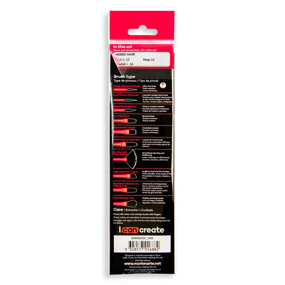 - 5 brushes included (1 x Flat 4,1 x Flat 12,1 x Round 6,1 x Round 16 and1 xMop 16)