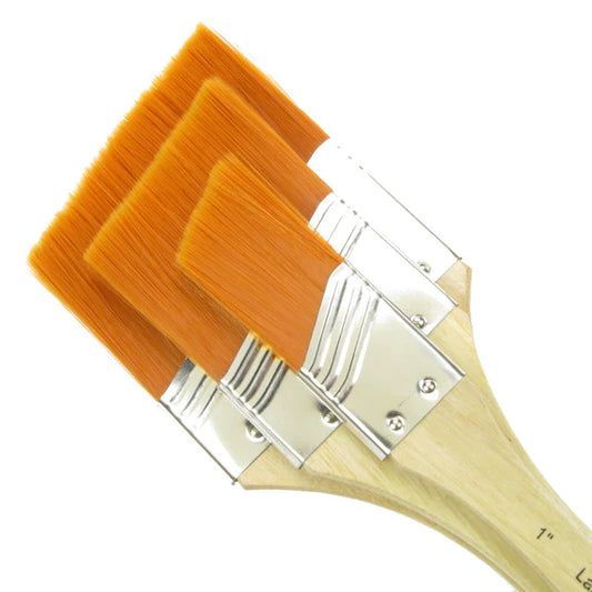 The flat brush features a straight, rectangular edge that makes it incredibly versatile for various painting techniques. Its design allows artists to create both thin and broad brushstrokes with simple adjustments in pressure and angle.