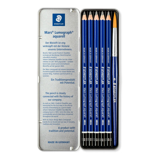 Staedtler Mars Lumograph Aquarell Pencil Tin of 5 with Brush