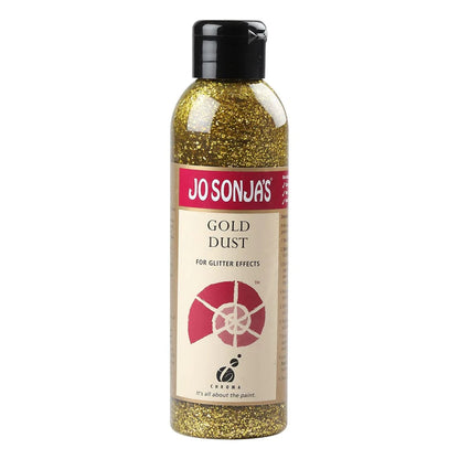 A clear gel containing tiny light reflecting particles with the brilliance of rich gold. Use alone or with Jo Sonja's Acrylic Colours. Create glitter effects on most surfaces. Non-yellowing. Brushstrokes disappear when dry. Suitable for a variety of surfaces including paper, card, glass, transparency film, plastic, canvas, wood, terracotta, tin, fabric, silk or dried flowers.