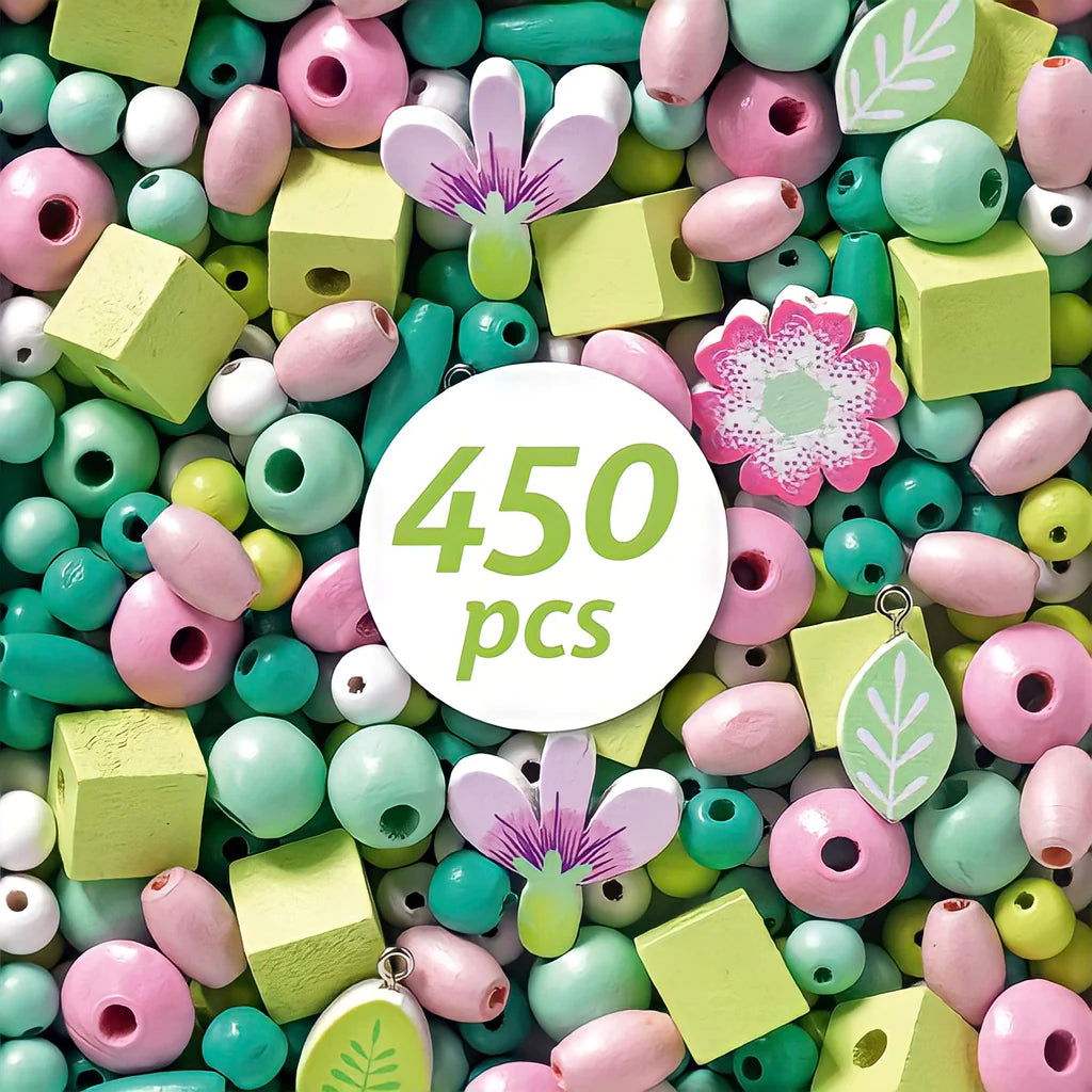 Packaged set of 450 beads with pretty leaf and flower charms. Excellent threading activity to develop fine motor skills and explore sequence and design.