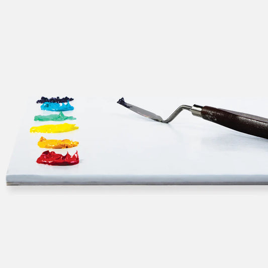 Glass palettes provide the smoothest mixing surface and exceptional colour accuracy. They're incredibly easy to clean and non-porous, keeping colours true. Best suited for tabletop painting due to their weight.