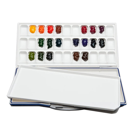 For watercolour work: Plastic or ceramic palettes offer the right surface for water-based techniques.