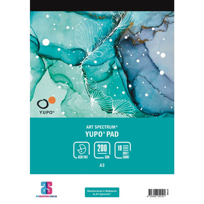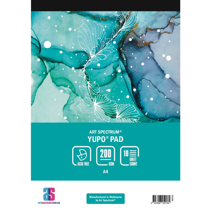 Synthetic Yupo paper consists of petroleum-derived polypropylene resin and inorganic filler (calcium carbonate). A synthetic (polypropylene) substrate is born with a non-porous surface that repels water. Yupo has an ultra-smooth finish, a non-absorbent substrate that dramatically changes the way you paint, print or draw and has superior strength.
