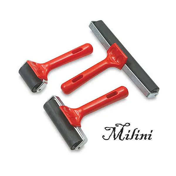 This range of heavy-duty, quality hard rubber rollers (brayers) are perfect for printmaking styles that require a firm, consistent and high pressure roller. Can be used to apply ink or to take the print.