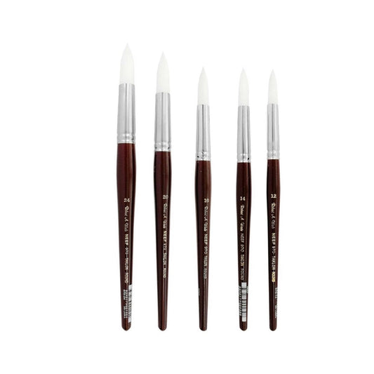 Perhaps the most recognised brush shape, the round brush features a pointed tip that tapers from a fuller belly. Available in both sharp and blunt point variations, this classic design has been favoured by artists for centuries.