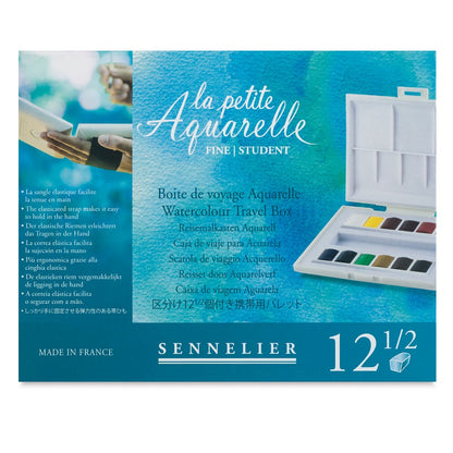 āLa Petite Aquarelleā is more than a student watercolour. While not as pigmented as the high quality Sennelier Artistās Watercolour ā and containing less honey ā this set has a lot to offer. Think of it as a practical quality product available at an affordable price. Convenient elastic strap allows outdoor artists to hold the set better. Carefully selected colours represent the extensive Sennelier palette. Practical inside mixing tray includes brush area (brush not included).
