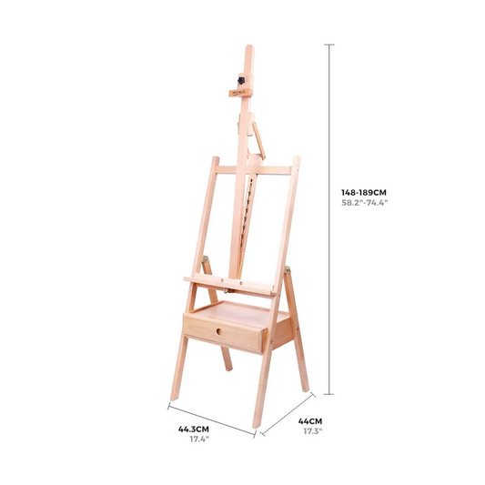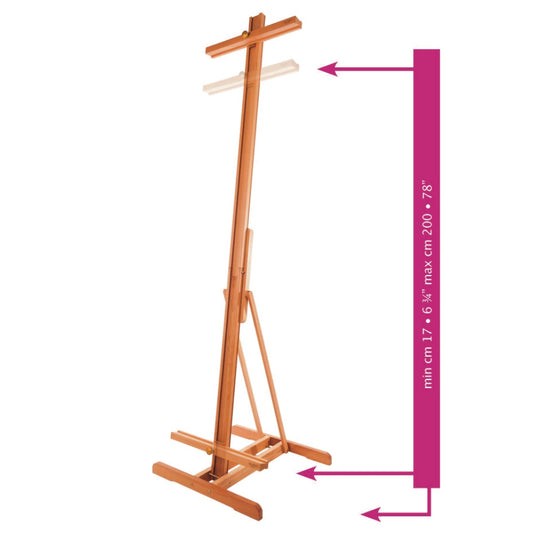 Recognised by their distinctive horizontal bars forming an "H" shape, these easels provide robust, stable support for various canvas sizes. They typically feature adjustable height and tilt mechanisms, making them ideal for studio work.