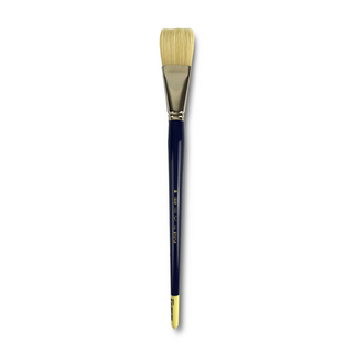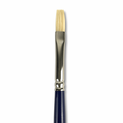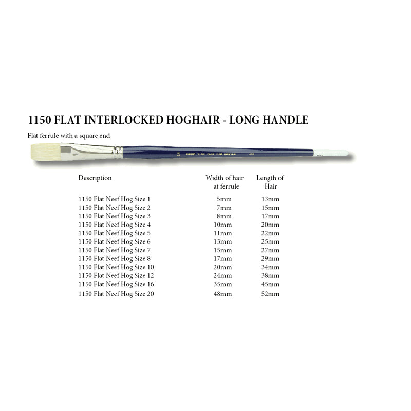 100% interlocked hoghair blue handle Neef 1150. This bristle leaves brush marks in the paint film where required and only the best quality Chunking bristles are selected. An extra length of hair is inserted into the ferrule, formed into a mould and oven heated for a short time this gives the bristles greater spring. All of this quality control enables the interlocked bristle to retain its shape and resilience over many years. Chungking bristle hoghair is specially prepared to give the best quality results over many years. We recommend these brushes to oil painters. If you look after them they will last a very long time and improve with use.
