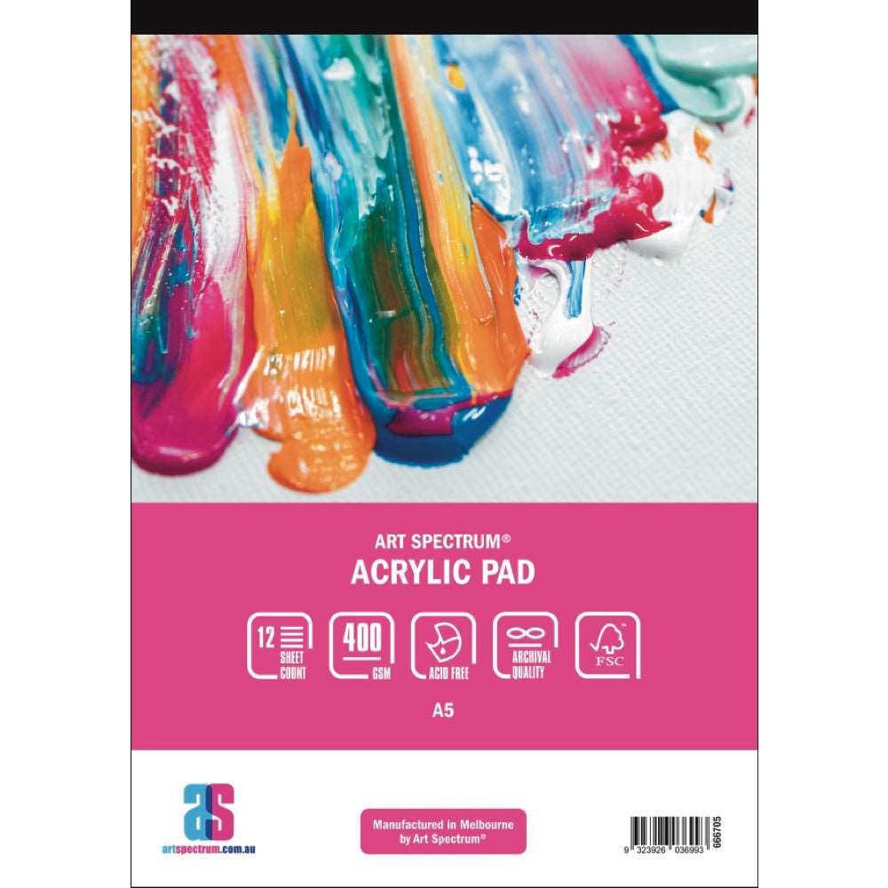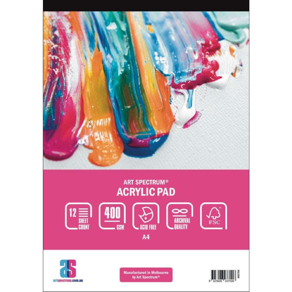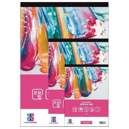 Art Spectrum Acrylic Pad range comes in 3 sizes (A5, A4 & A3) with a 400 gsm Medium (C/P) surface and a 12 sheet count.