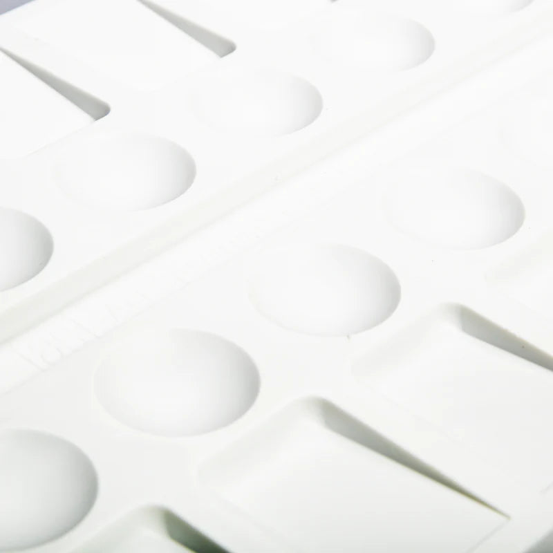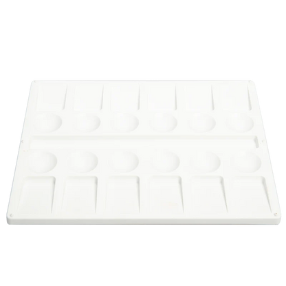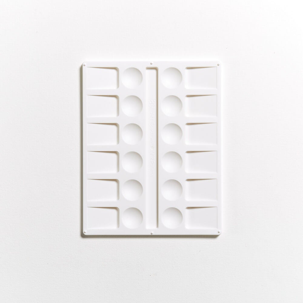 Plastic palette with 12 round and 12 slanted wells for a variety of mediums.