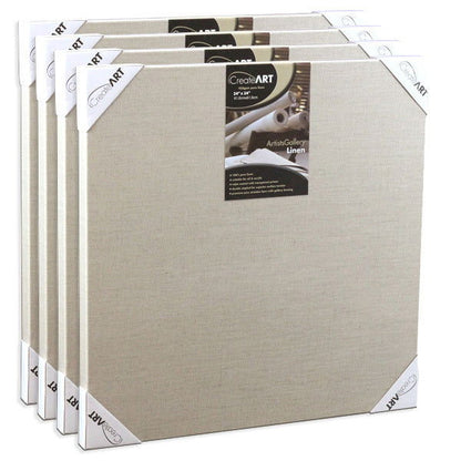 Linen retains its natural oils, which helps to preserve the fibre’s flexibility and stops the canvas from going brittle. It is also regarded as having a more ‘natural’ weaved finish than cotton.