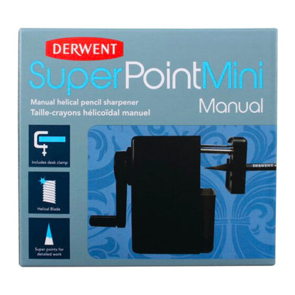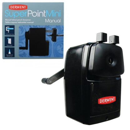 Derwent's new desk sharpener features a durable helical blade which sharpens pencils to super points for fine detail work. Suitable for pencils up to 8mm in diameter. The extendable front plate has a self-feeding mechanism which stops when the pencil has reached a superb point. The transparent sliding tray reservoir is easily emptied and each sharpener comes with a desk clamp.