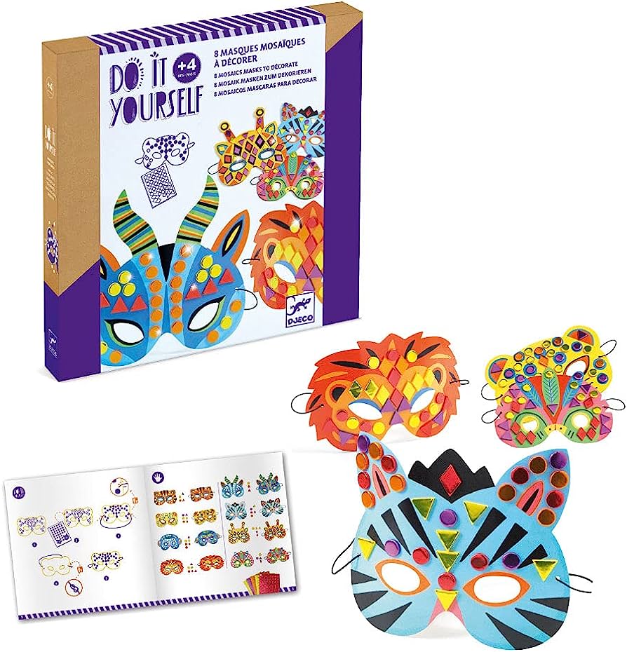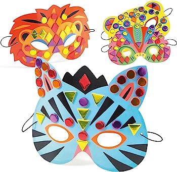 Product is constructed from: Soft cardboard masks, Metallic mosaic stickers