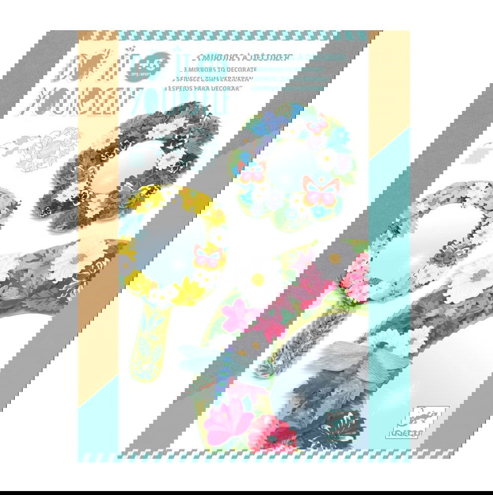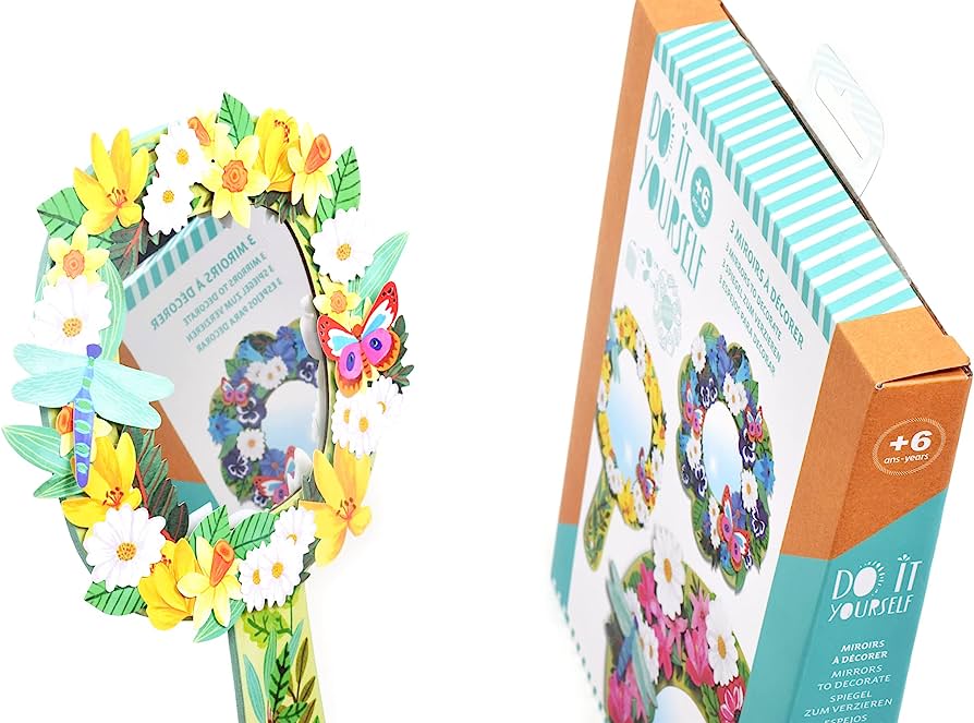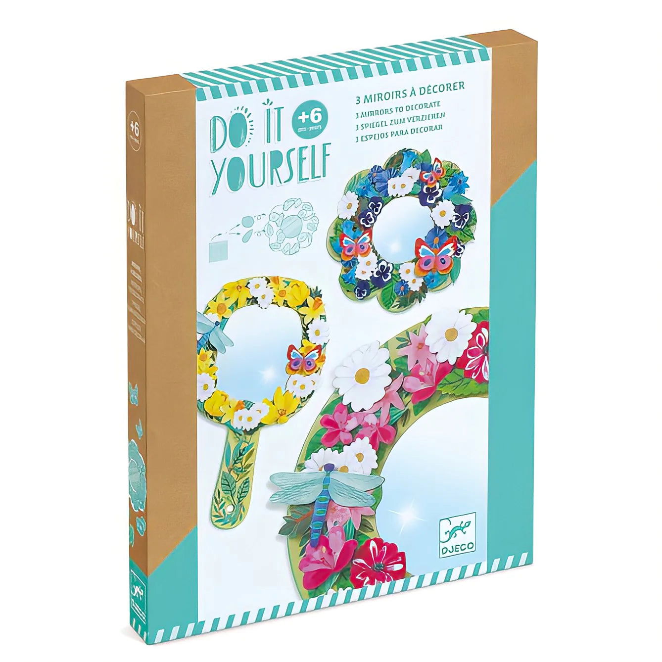Decorate the 3 small circle acrylic mirrors with the provided flower and leaf foam stickers that children can overlay to look like a wreath. Great for playdates, school holiday activities, birthday parties or crafting days.