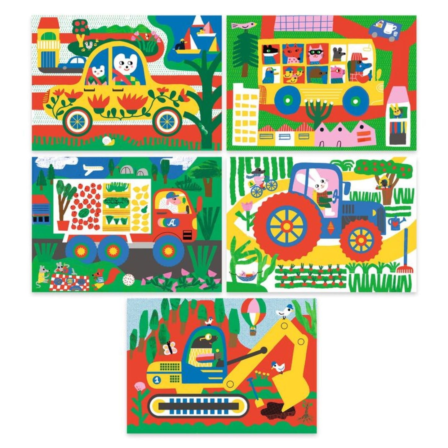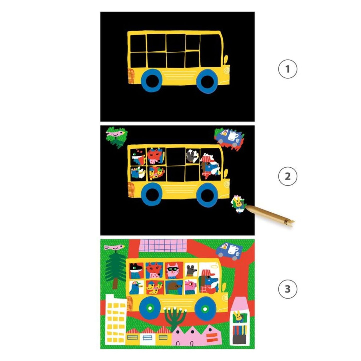 Introduce little ones to this mindful activity. This set includes 5 large scratch boards, on the theme of vehicles, with a large wooden stick suitable for the littlest hands. Using the 2 sides of the stick, the child scratches the surface of the black picture to discover surprises underneath.