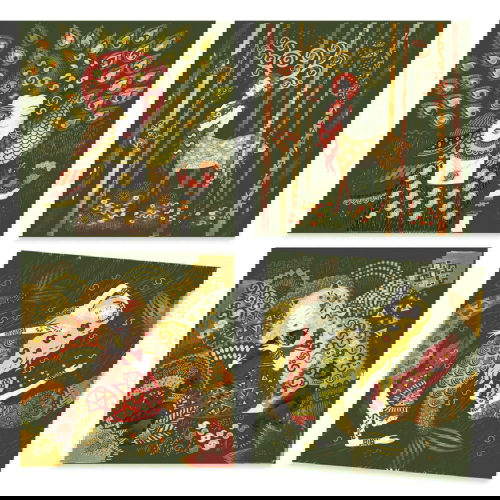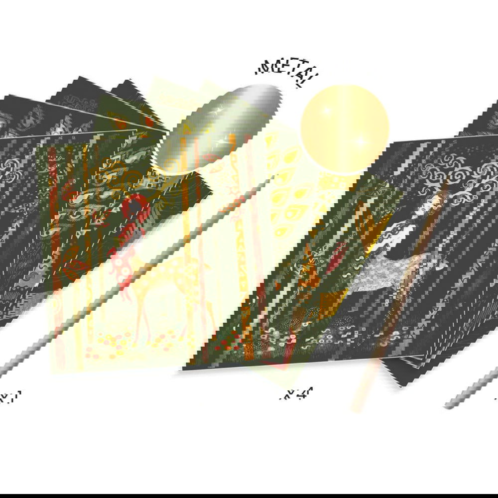 Contents: 4 scratch cards (20 x 20 cm) with golden sections and 1 double-ended wooden stylus.