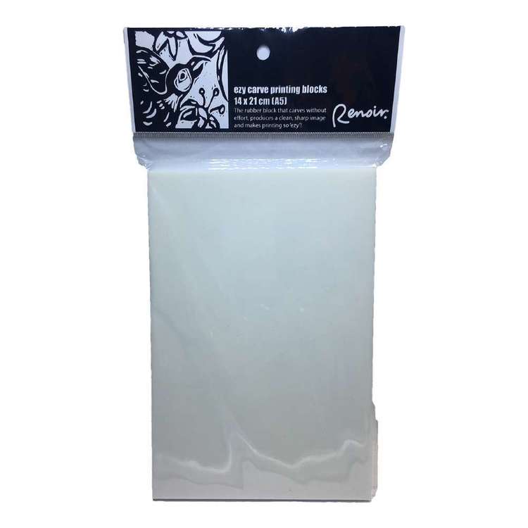 Renoir is proud of its Ezy Carve rubber printing blocks because they are safer for students to carve and easier to use than lino plates. They are very economical because both sides can be used and you can even print on ceramics with glaze. These blocks are flexible that you can print on fabric and almost any surface. You don’t need a press, just a brayer or barren, some paper, ink or paint and away you go. This block holds fine details and carves like butter! Ezy Carve Sizes: 8 x 8cm, A5 – 14 x 21cm, A4 – 21 x 29cm, 30 x 30cm.