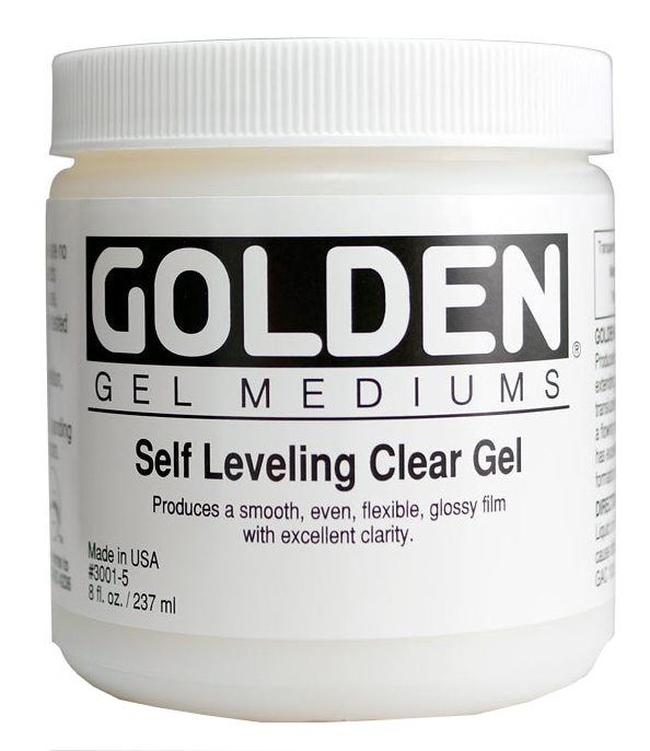 Designed to produce an even film with excellent clarity. This gel has similar qualities to the Clear Tar Gel: it has a resinous consistency and offers excellent leveling, yet its viscosity is closer to that of the Soft Gel. This product dries to a flexible, high gloss film, which can increase transparency and sheen while imparting a leveling quality to other GOLDEN Acrylic products. Blends with GOLDEN Acrylic colours to produce glazes without brushstrokes.