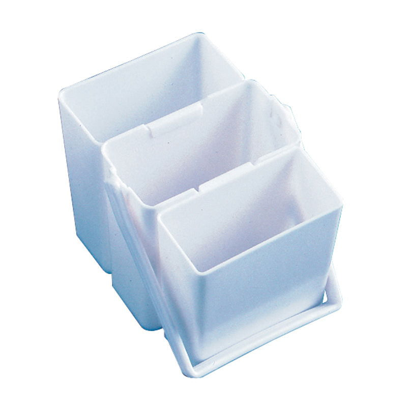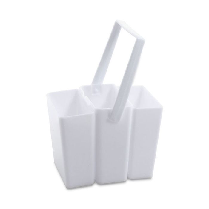 Keeping your water and brushes their cleanest is easy with this neat threecompartment brush washer with built in handle. Stores neatly in your travel box. 3.5" x 3.5" x 1.75" (stored). Quality white plastic.