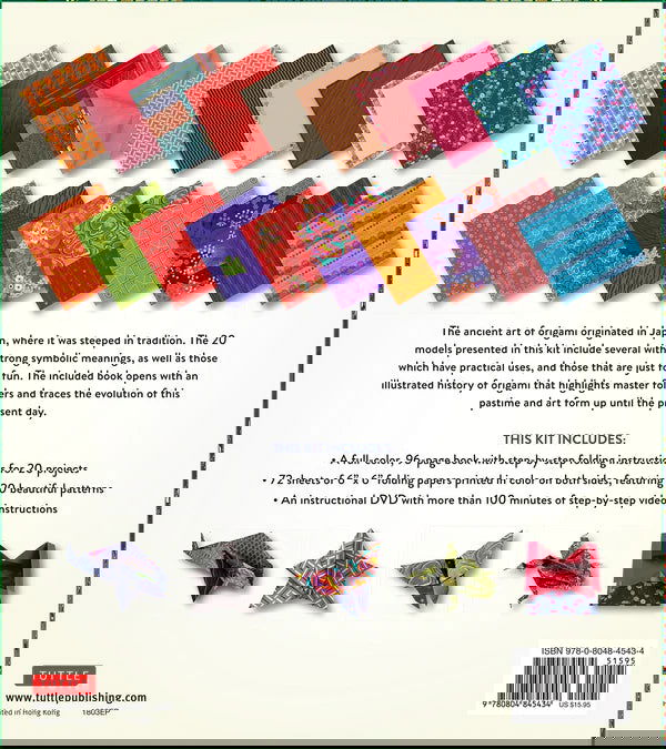 The ancient art of origami originated in Japan, where it is steeped in traditional values. The 20 models presented in this kit include many with strong symbolic meanings, such as the carp, the frog and the crane, which symbolize longevity, good luck and perseverance.