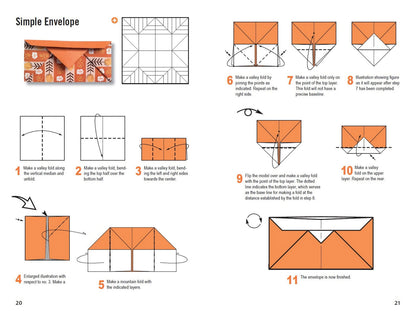 Also included in this kit are paper models which have practical uses, such as a bag in which to store spices or powdered medications, the masu box for containing small gifts, and uniquely shaped notes with elaborate closures. The more playful side of origami is represented as well: the stylized sumo wrestler with realistic moves has entertained Japanese children for centuries, and the paper Samurai hat is fun to play with.