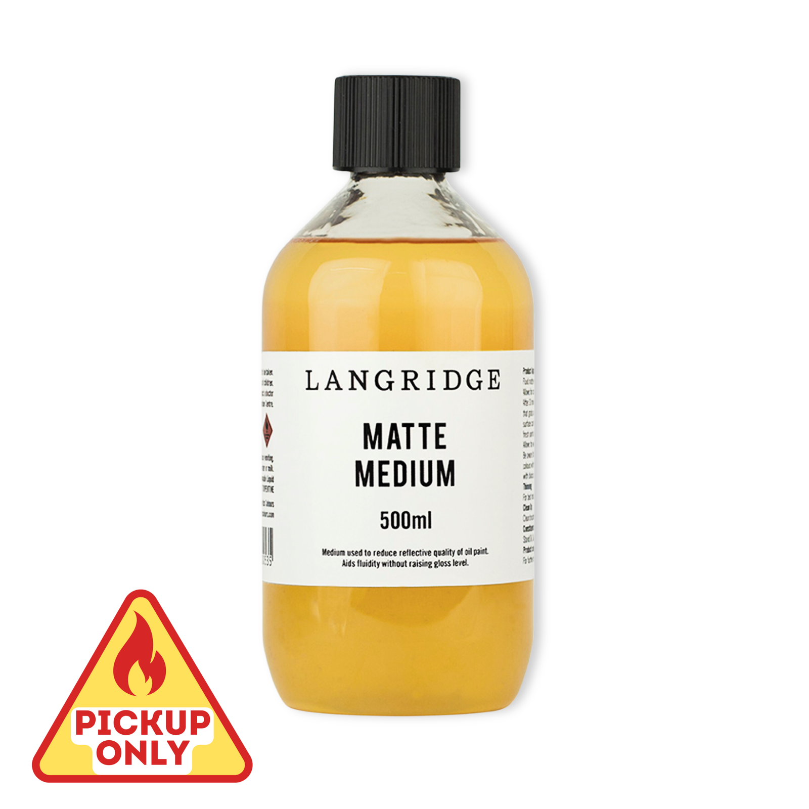 A matte version of Langridge Painting Medium for adding fluidity and improve paint handling. It quickly dries to a tack but remains fresh so that it may still be painted into. Stand Oil base ensures non-yellowing of artwork. Caution should be used when painting with deep tones as the matting agent raises the tonal values slightly. (Stand Oil, Linseed Oil, Gum Turpentine, Matting Silica, Cobalt Driers).