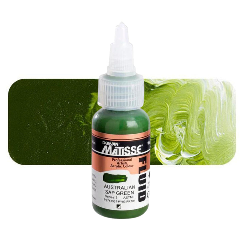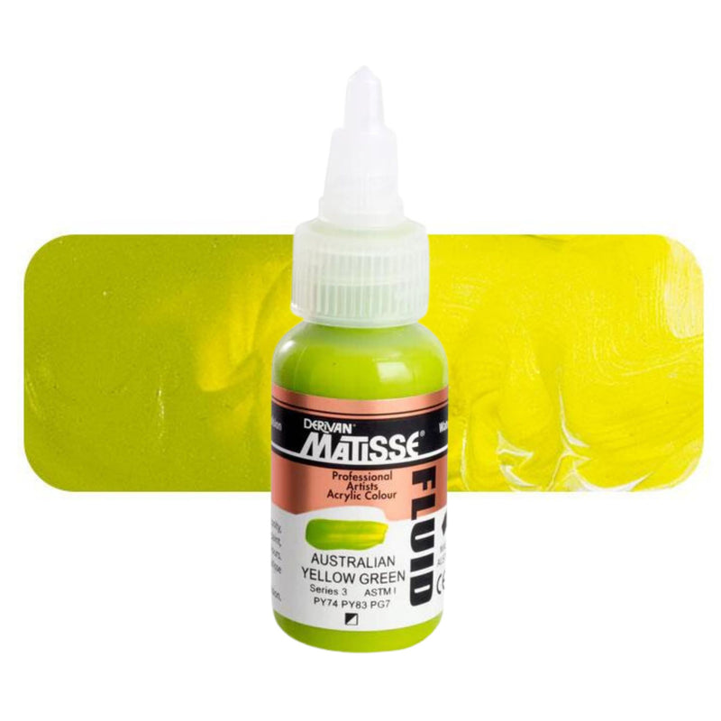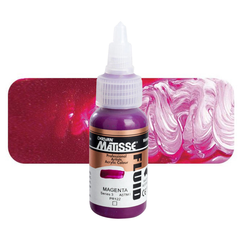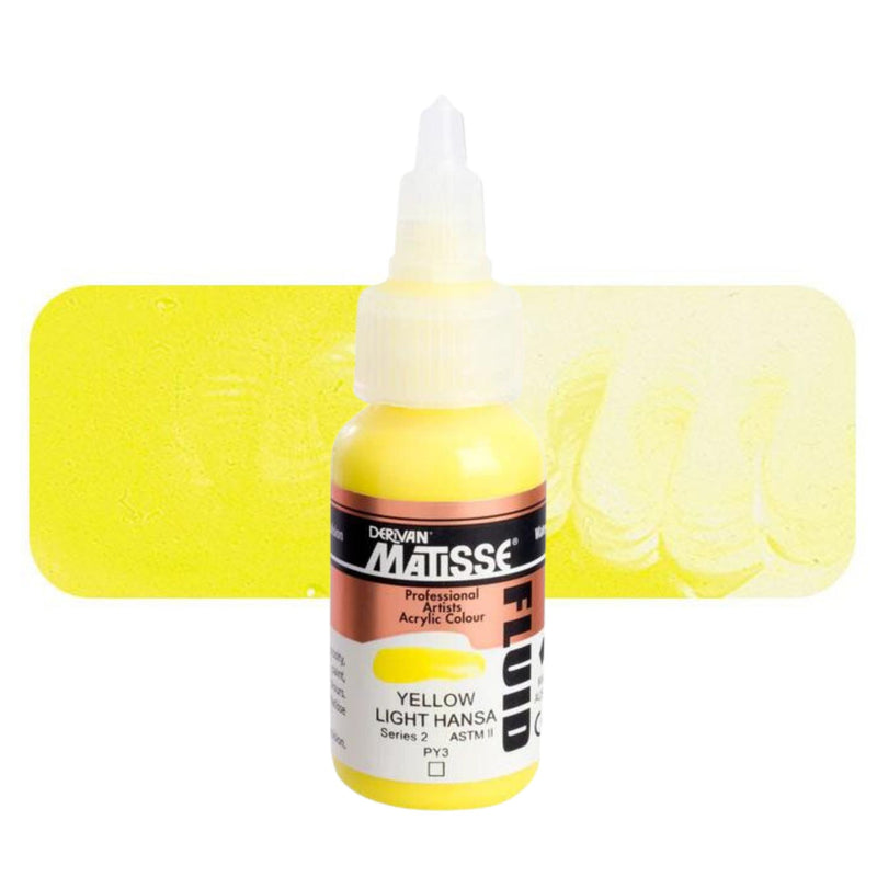 Matisse Fluid Acrylic Paint is a highly pigmented paint with a liquid-like viscosity. Each colour has an ASTM rating of I or II indicating very good to excellent lightfastness, and they are completely opaque used straight out of the container.