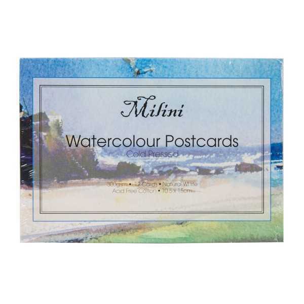 Milini Watercolour Postcards 300gsm Cold Press Pkt 12