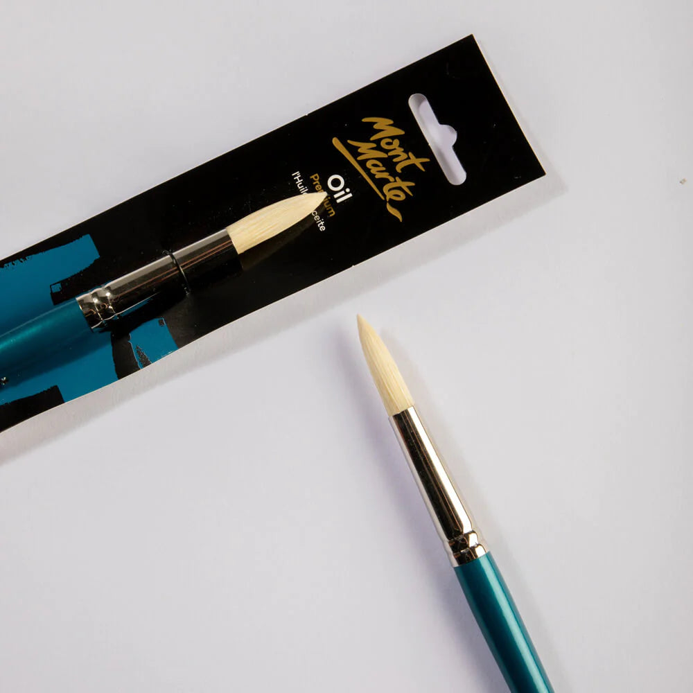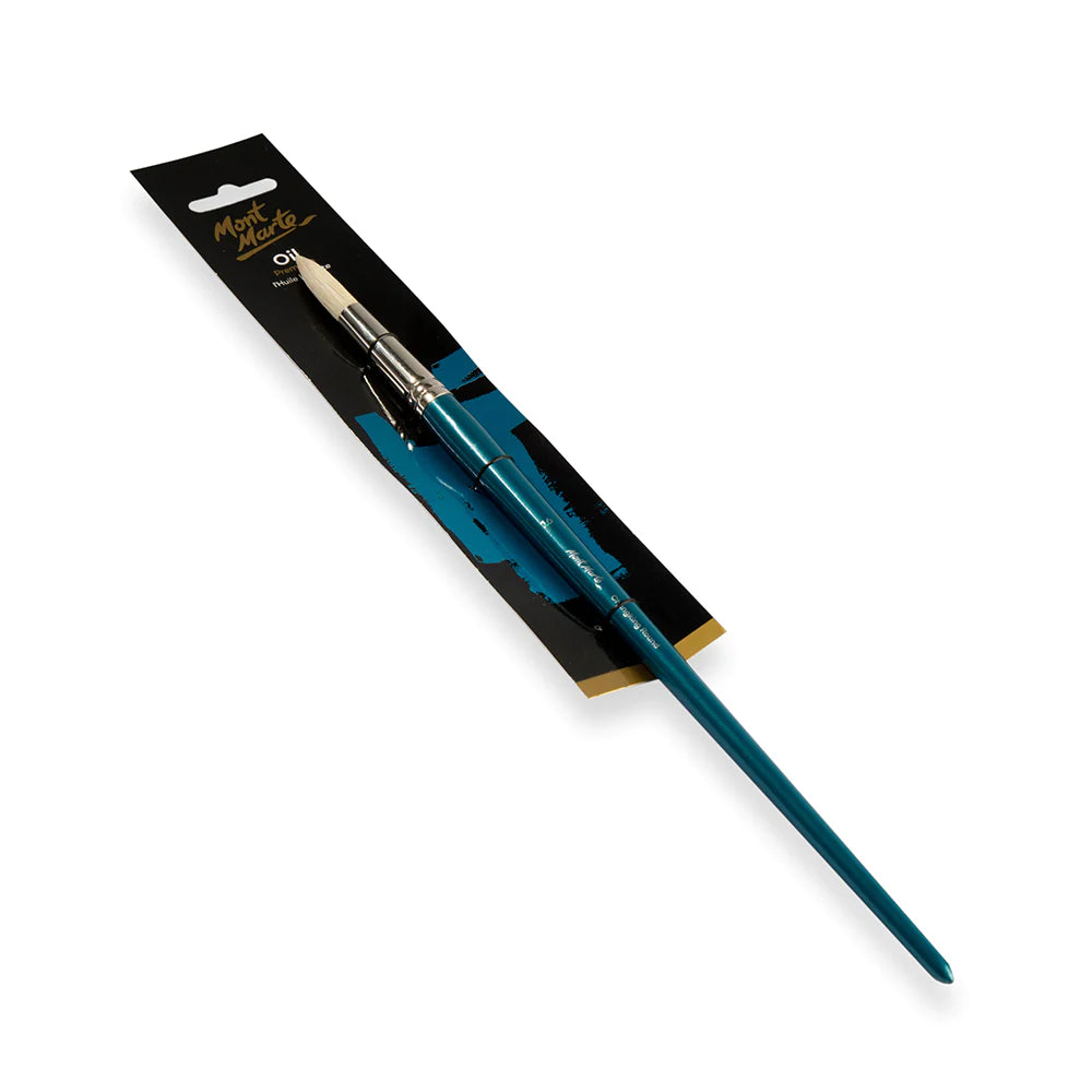 Holds paint extremely well, allowing bold strokes of colour. Coarseness is perfect for applying oil paint. Tip slightly curved/round producing soft, tapered strokes.