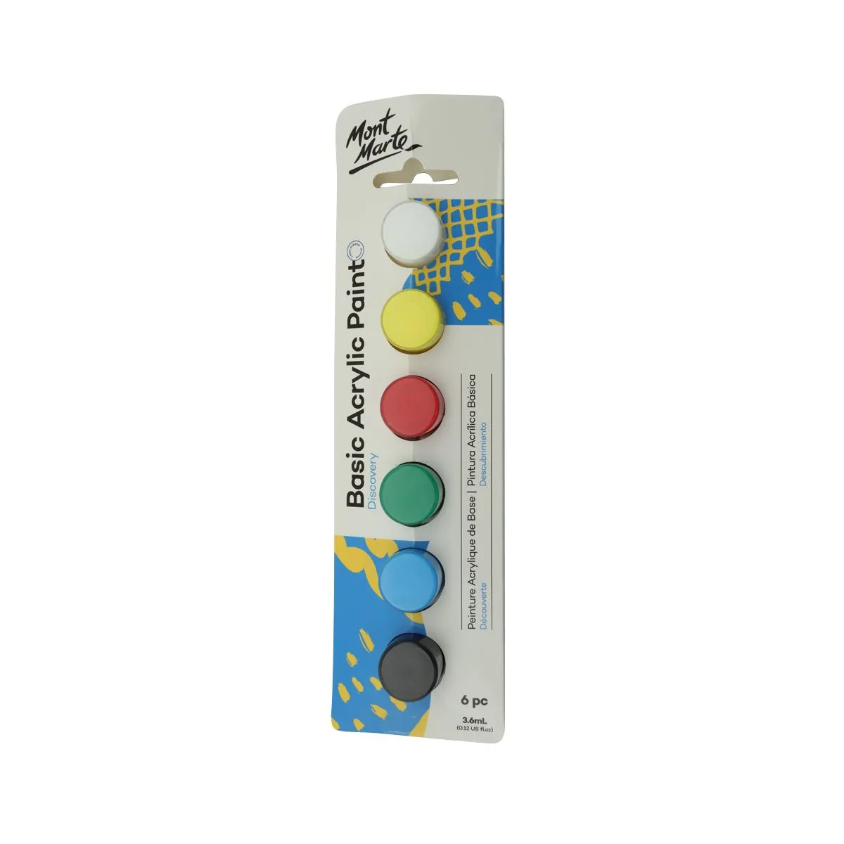 This Mont Marte Discovery staple paint set features 6 x 3.6ml acrylic paints in basic primary colours. These compact pots can be transported easily and take up very minimal space when stored away. Ideal for the travelling artist that likes to paint on the go or for kiddies' craft stations. This versatile paint has fluid consistency for super easy paint application and is quick drying.