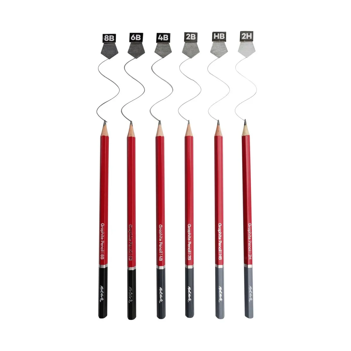 - 6 grades of graphite pencils - 2H, HB, 2B, 4B, 6B and 8B