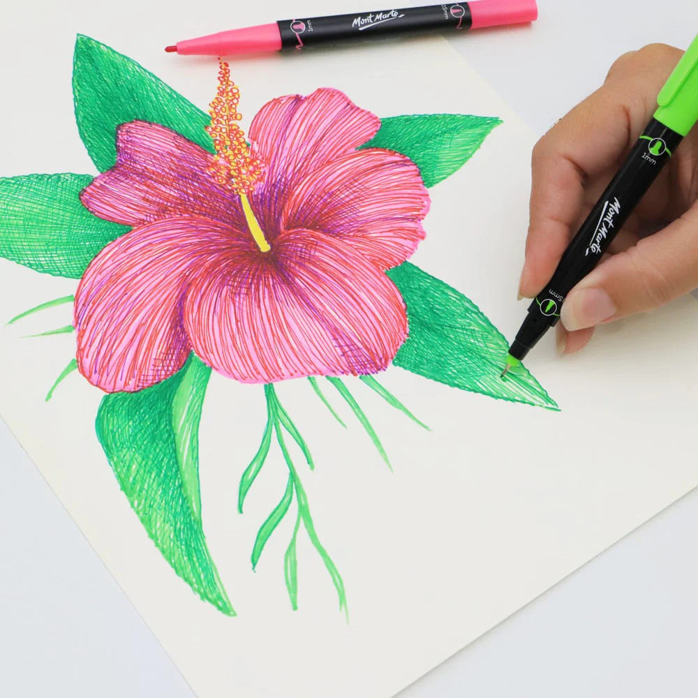 The Mont Marte Dual Fine Tip Art Marker set features a vibrant selection of blendable colours that are ideal for designers, illustrators, and fine artists.
