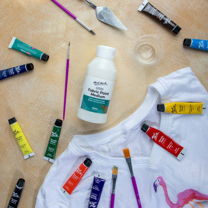 Get your acrylic paints textile-ready with Mont Marte Fabric Paint Medium 250ml. This easy-to-use fabric medium lets you mix acrylic paint colours of your choice at a 1:1 ratio, transforming them into flexible, long-lasting fabric paint. For increased opacity, simply apply additional layers once dry.