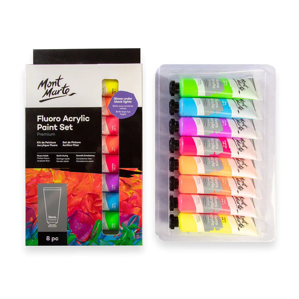 Mont Marte Fluoro Acrylic Paint Set 8pc x 36ml