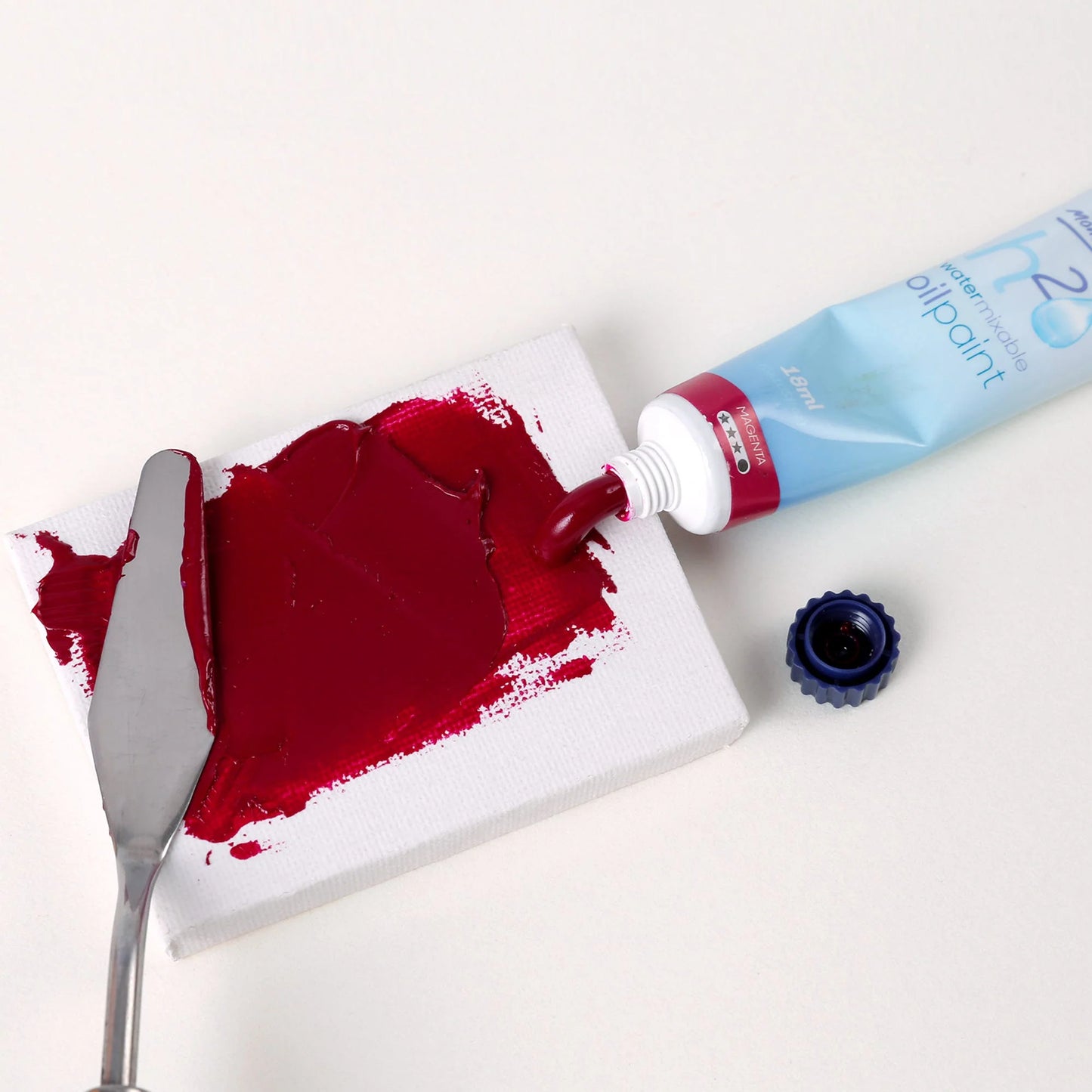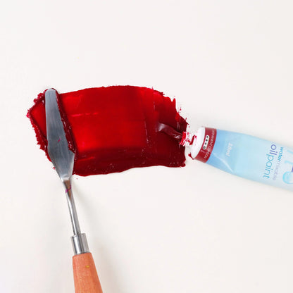 Mont Marte H20 Water Mixable Oil Paint dries to a satin finish. It is a medium to heavy bodied paint which can be diluted with water.
