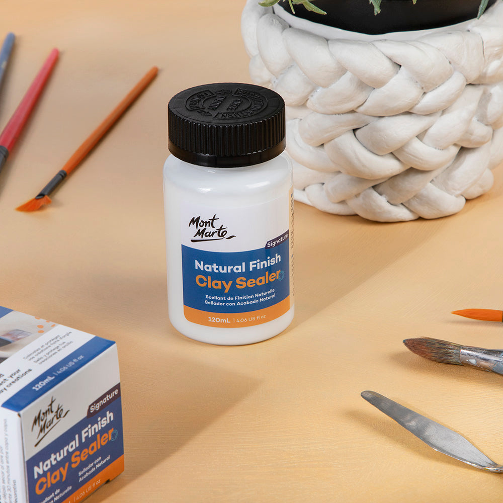 Seal up your clay creations with Mont Marte's natural finish polymer and air dry clay varnish! This ultra-matte sealer adds a natural finish that shows off your work without the shine. Just brush on the water-based formula for a durable finishing touch on air-hardening modelling clay or painted polymer clay.
