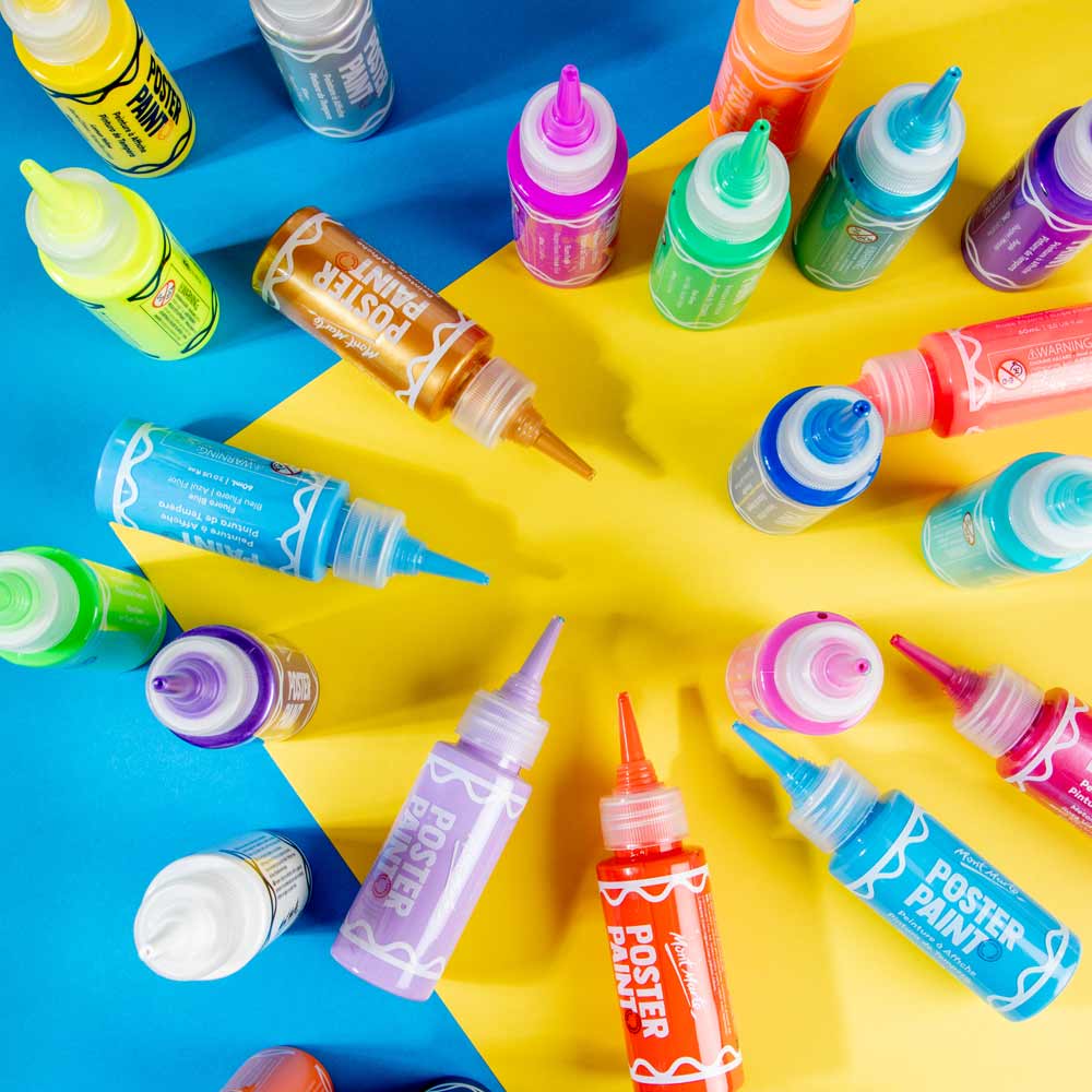 Best of all, these paints are washable and non toxic, so you can rest easy knowing this poster paint set is safe for kids and washes off easily with a bit of warm soapy water.