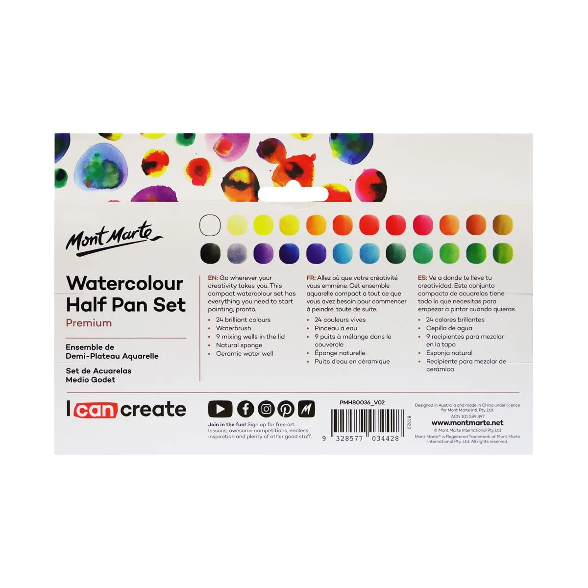 Mont Marte Premium Watercolour Half Pan Set 28pce