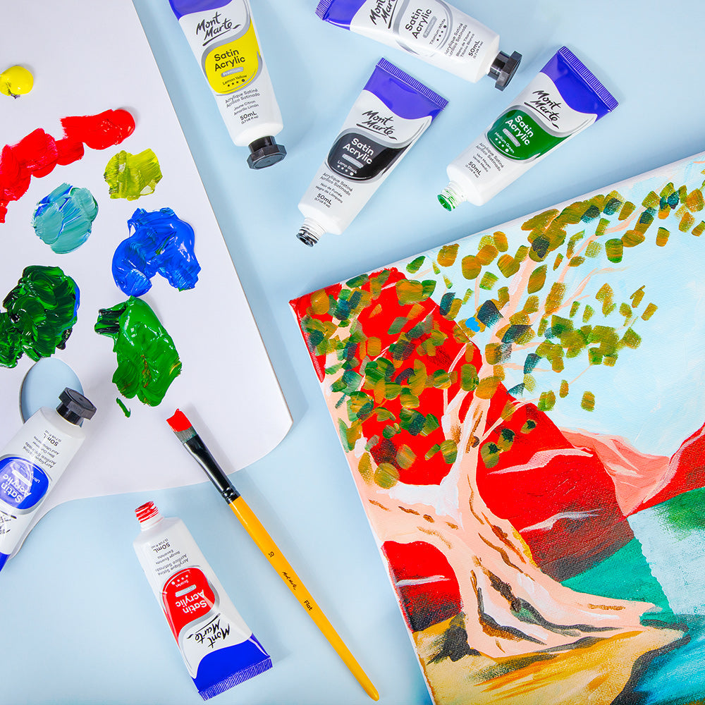 With a smooth application and excellent coverage, these premium acrylic paints help every project stand out. Offering artist-quality performance at an affordable price, Mont Marte’s Satin Acrylics make it easy to bring creative visions to life.