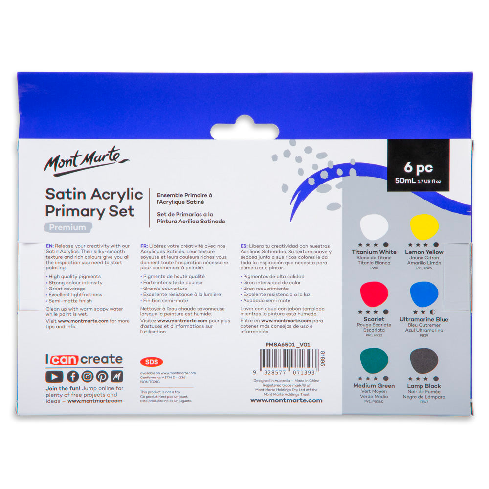 Mont Marte Satin Acrylic Paint Set 6pc x 50ml