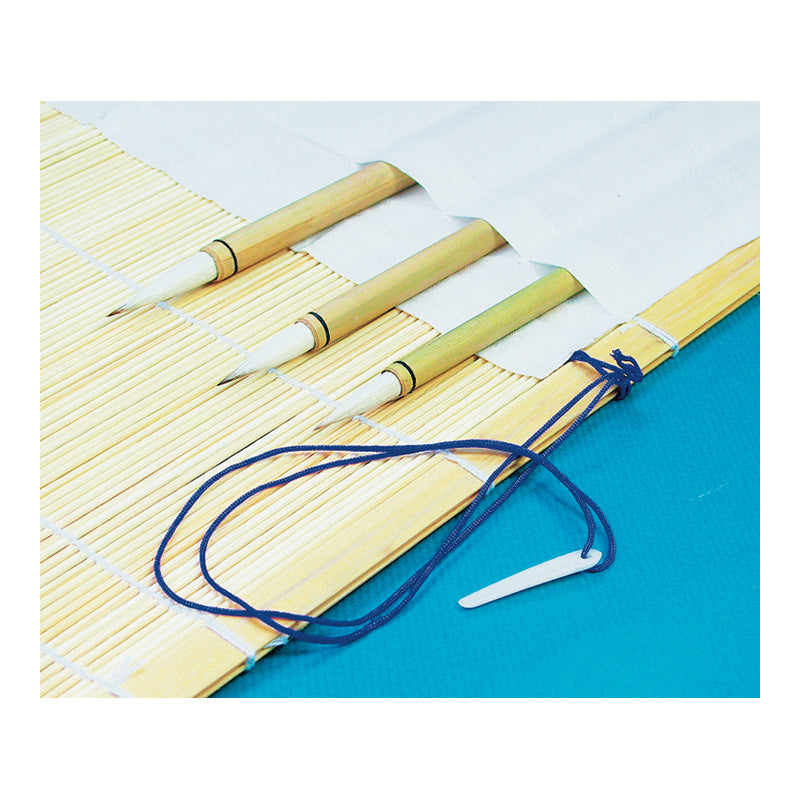 For artists who want their brushes to last, this mat offers air flow while drying as well as protection from damage. Sewn onto the bottom half of the mat is a sectioned brush holder made from 100% cotton cloth. There are 12 slots for brushes ranging from 2 in. to 5 in. wide. Just insert each brush handle into the sleeve and roll the mat up. The cloth will help keep from moving and being damaged while transporting from one place to another. Tie up with two strings.