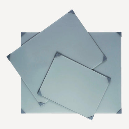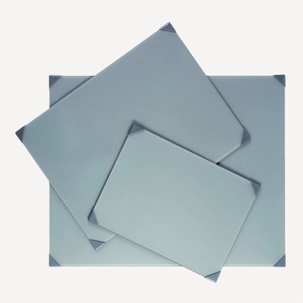 POSH Glass Palettes are everything the name implies. Available in grey, white, and clear, as well as multiple sizes, 9"x12," 12"x16," and 16"x20." This product uses 1/8" tempered glass for maximum strength and safety, along with custom corner guards for added protection and surface traction. The edges are softened, and the underside (grey and white) is finished with a dense solvent, and water resistant formulation that has excellent colour fastness. The clear model provides you the opportunity to add your own colour, grey scale or teaching products to the underside.