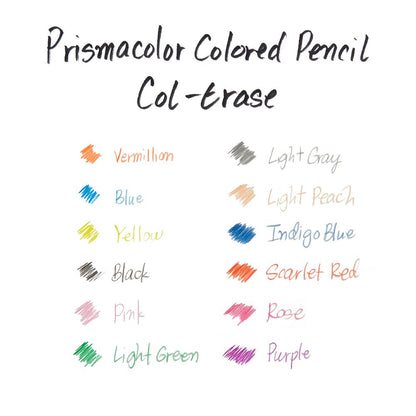 Revise your art easily with vivid Prismacolor Col-Erase Erasable Colored Pencils. The colored pencils feature vivid pigments that erase easily. They also have tough medium points that resist breakage. Bring your illustrations to life with Prismacolor Col-Erase pencils.