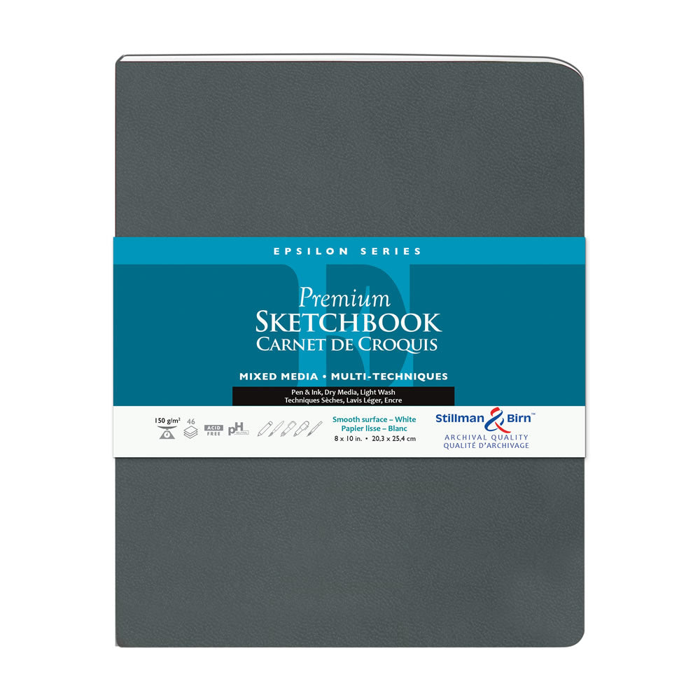 Discover the Stillman and Birn Epsilon Series Sketchbooks, designed for artists who appreciate a high-quality mixed media surface. Featuring 50 sheets (100 pages) of heavyweight 150 gsm paper, this sketchbook offers a delightfully smooth finish that is perfect for fountain pens, calligraphy, and a variety of pen and ink techniques. The paper is crafted to prevent feathering and bleeding, making it ideal for detailed work. Additionally, Epsilon paper can accommodate light washes of watercolor, providing versatility for your creative projects.