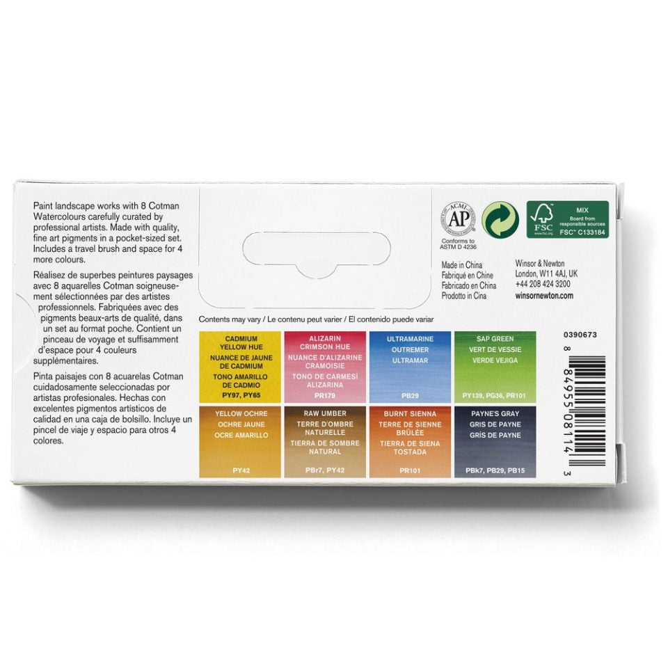 Winsor Newton COTMAN WC Pocket Set 8 Half Pans - Landscape